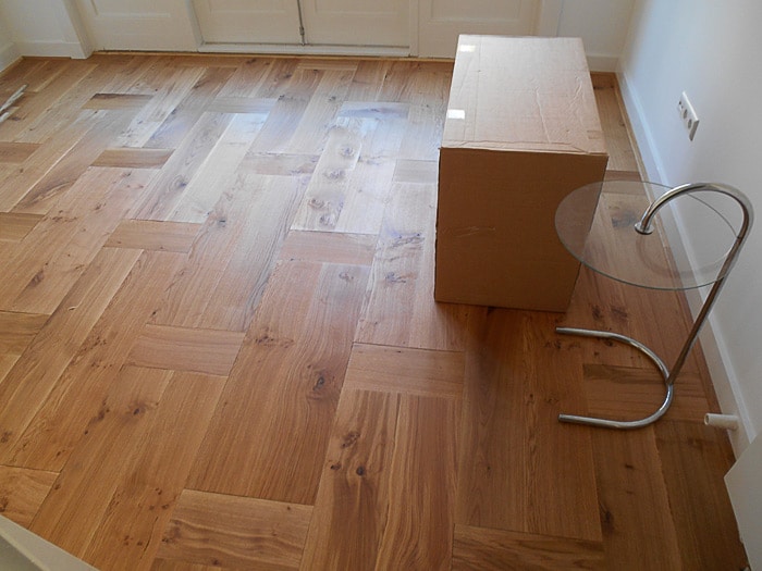 Een naturel afgewerkte eiken blok-vloer in de grading select rustiek.
